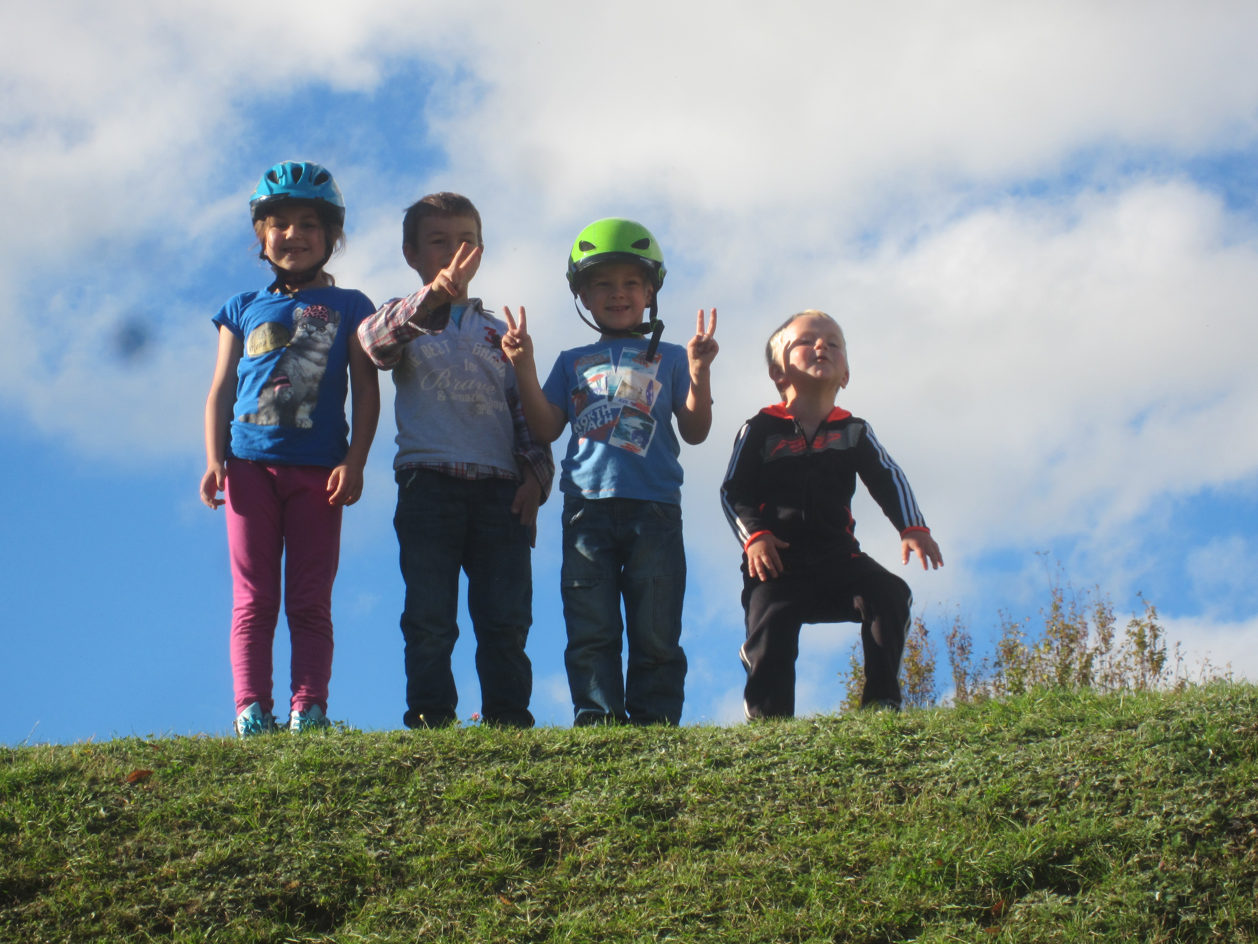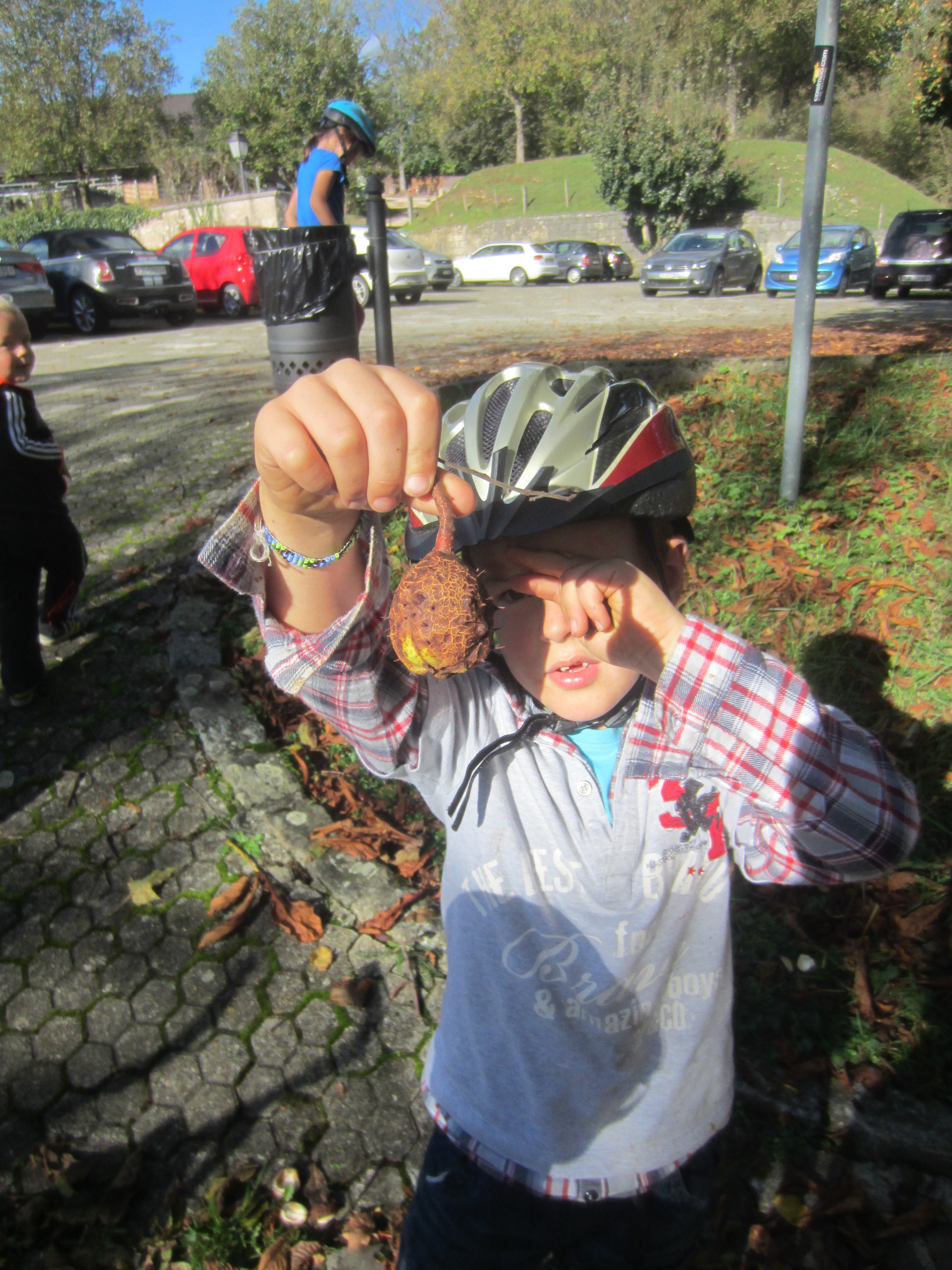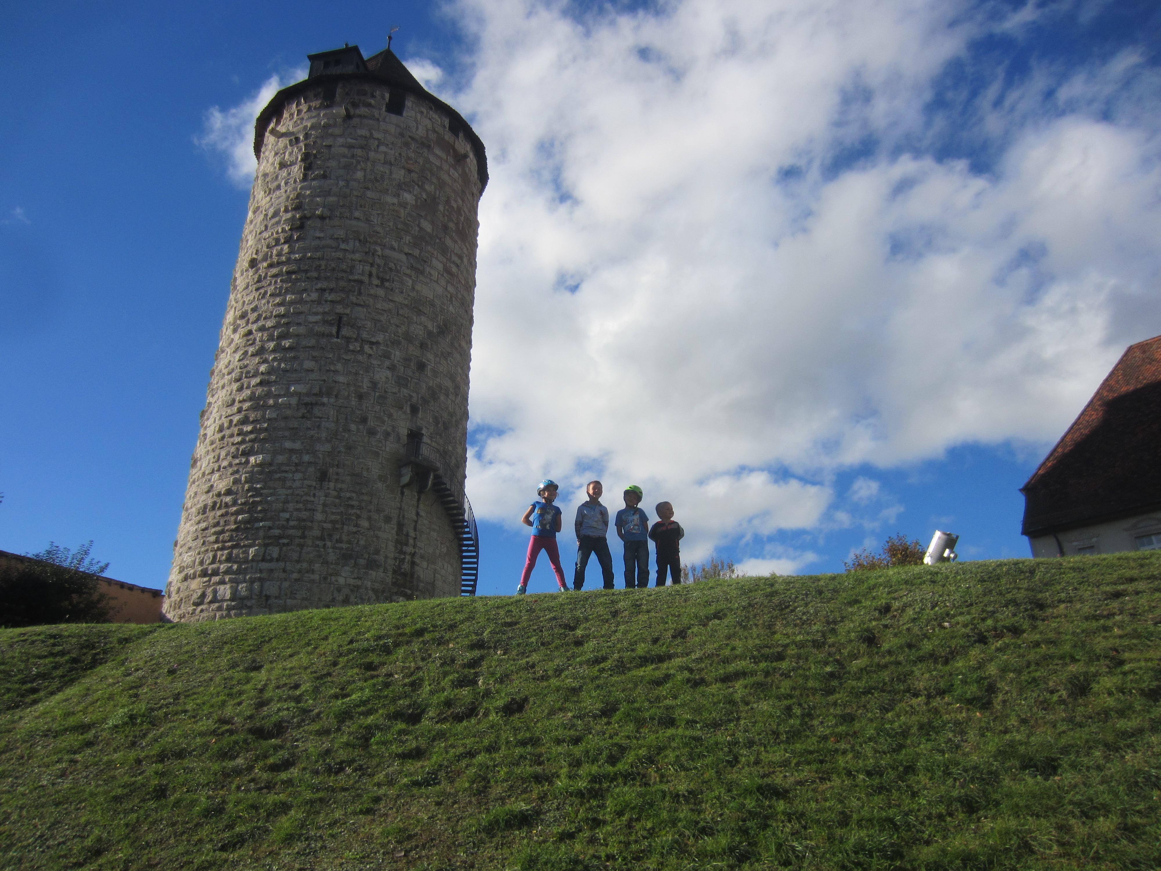 Grimpant sur le tertre de la tour, les enfants surplombent l’esplanade du château.