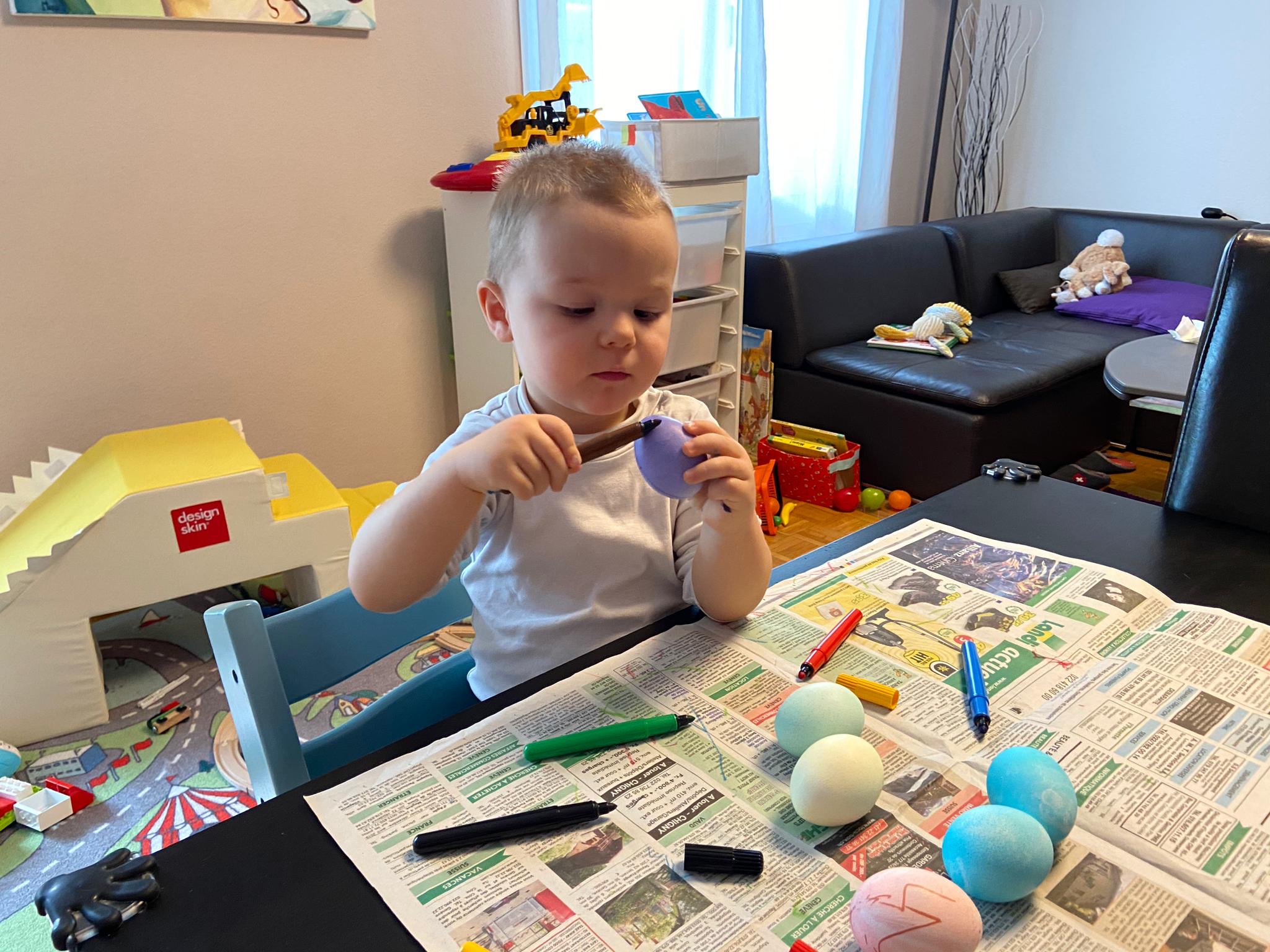 Jo décore des oeufs