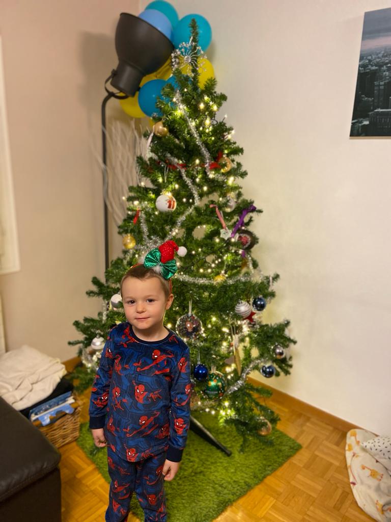 Jo devant sapin de Noël