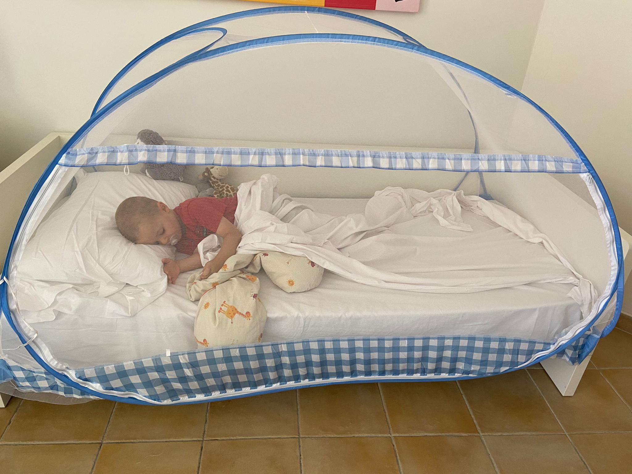 Jo dort ds lit avec moustiquaire