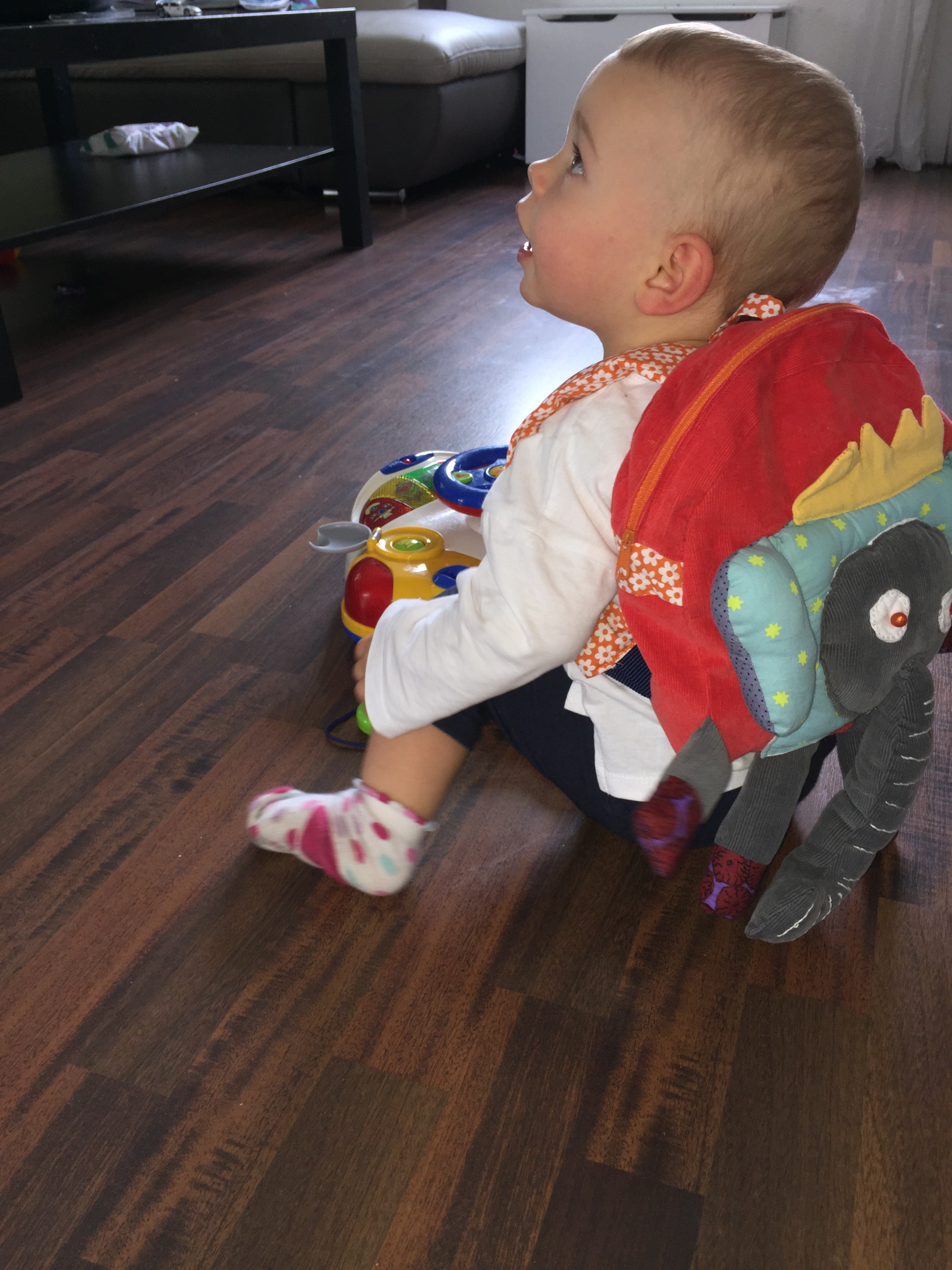 Ce jour-là, Enzo a (rapidement) bricolé pour son petit frère et sa petite soeur une réplique du clown escamotable mentionné ci-dessus. Il en est fier et se réjouit surtout des éclats de rire de Céleste quand le petit personnage apparaît puis disparaît.