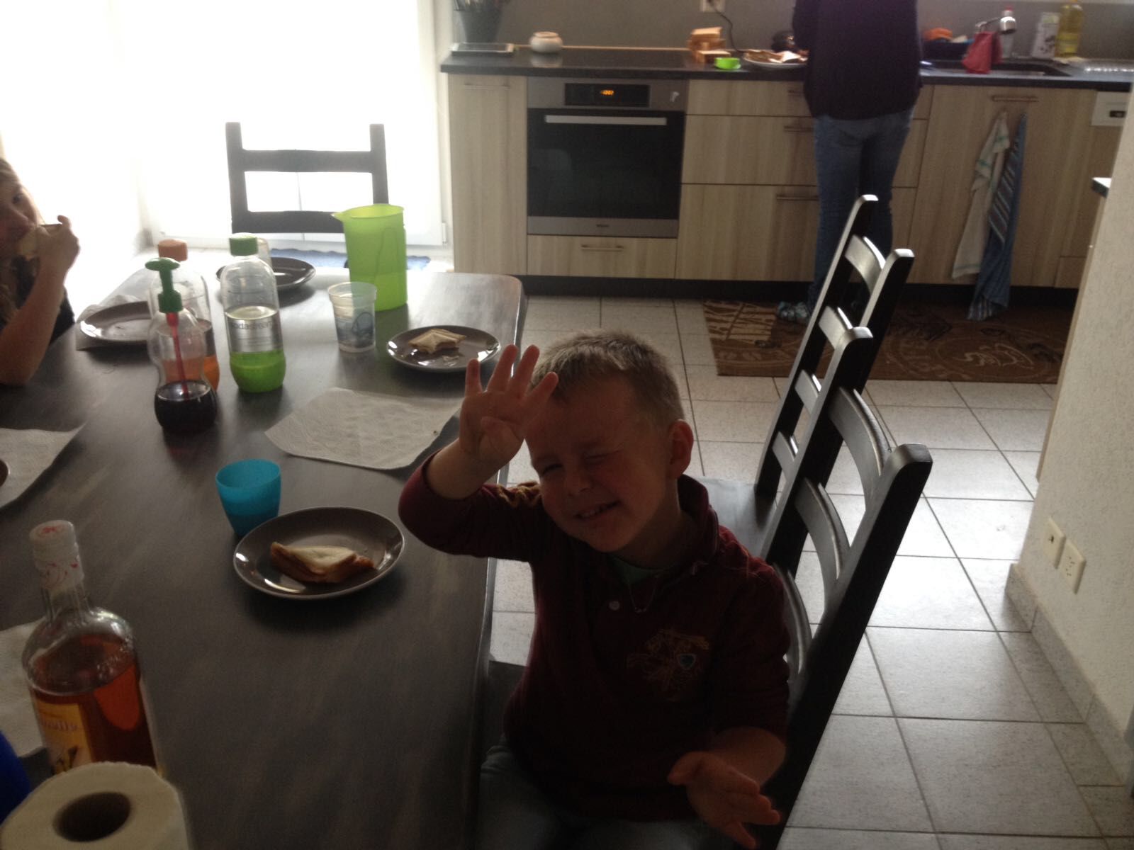 Puis vient l’heure du repas. Les enfants le prennent sur la terrasse, profitant d’un agréable soleil automnal. (Qui croirait qu’on vient de passer à l’heure d’hiver ?)