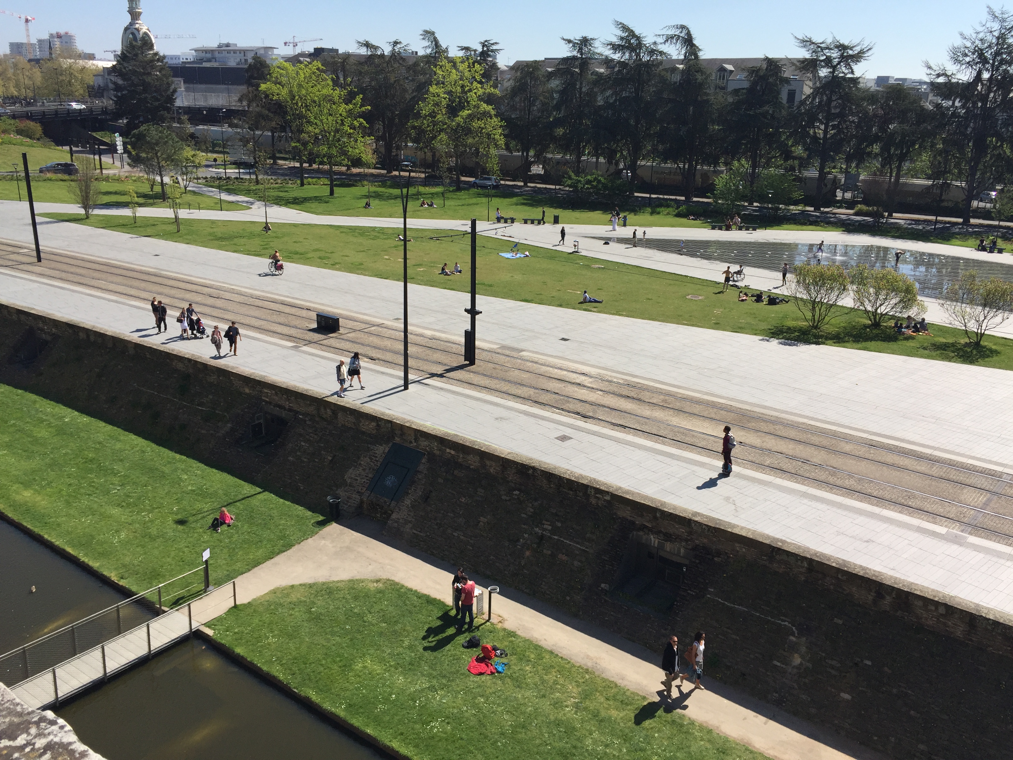 Nous consacrons la journée entière à la suite de la découverte de la ville et en particulier de son château. Laura et Quentin se montrent (presque) toujours très intéressés à voir, explorer, découvrir ce que les lieux traversés ont à offrir. Une visite qui leur est particu-lièrement destinée renforce encore leur intérêt de pour cette visite-découverte du château de Nantes, celui d’Anne de Bretagne.
