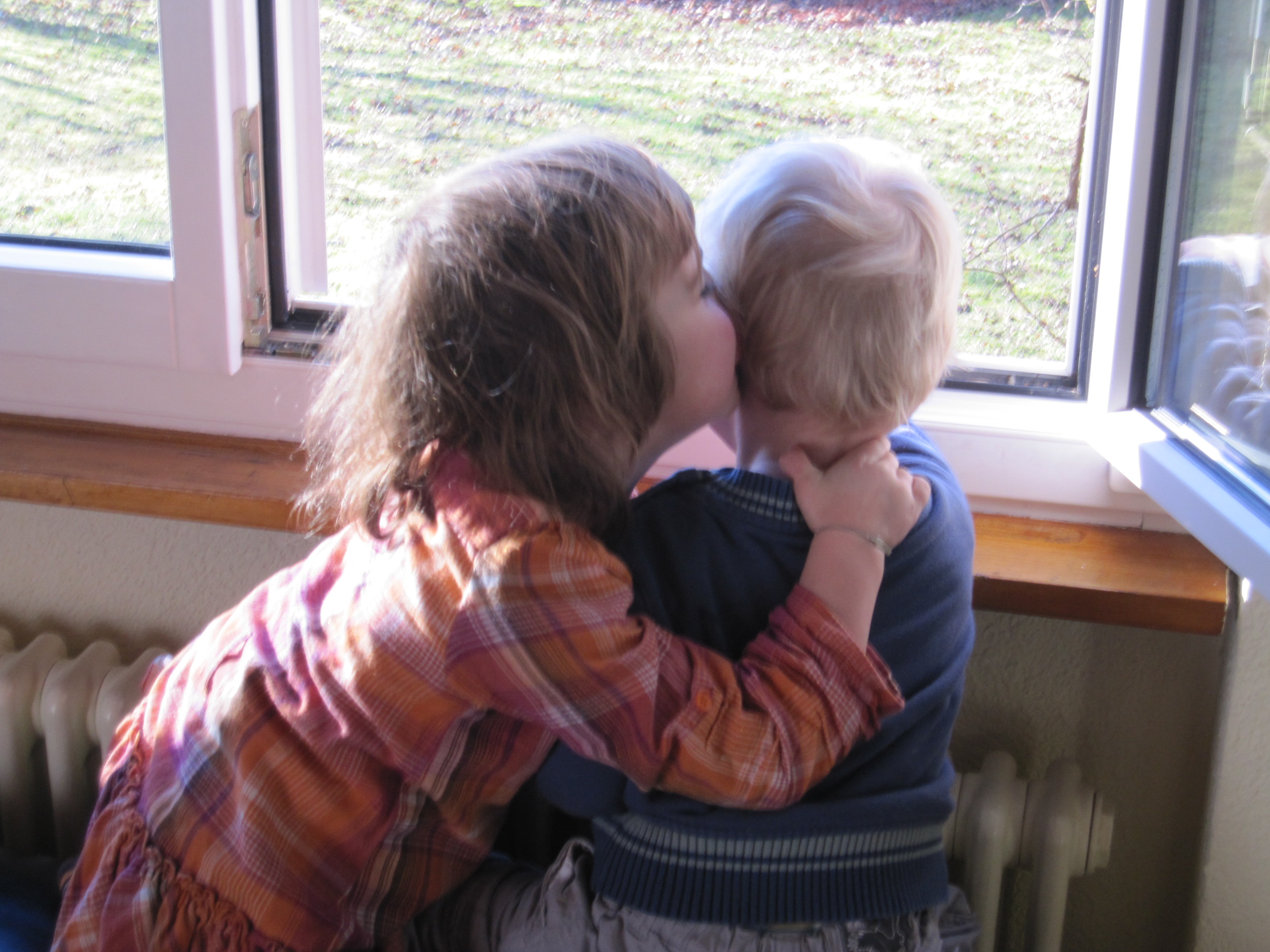 Le lundi, Laura et Quentin passent la journée chez nous. C’est pour nous l’occasion de voir la dynamique qui s’établit entre eux : Il y a les moments où chacun joue de son côté sans interférer ; il y a les moments de grande complicité où ils font les foufous ensemble ; il y a enfin les moments où ils se retrouvent «à deux». Parfois c’est pour se disputer un jeu (c’est assez rare car leurs intérêts sont très indépendants), souvent c’est pour partager une activité. Dans ces moments-là, Laura se montre véritablement la grande soeur, voire même à l’occasion la petite maman.