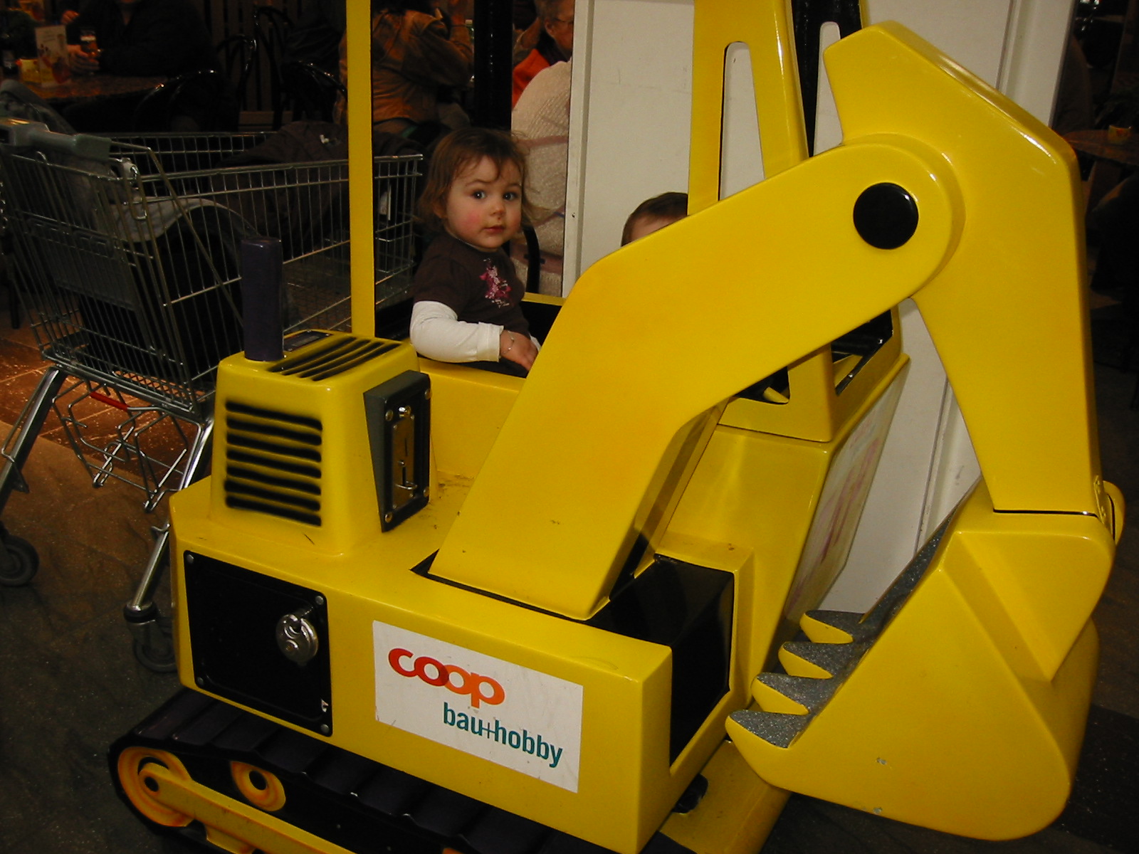 L’après-midi, rebelote : Il y a des courses à faire au centre commercial de Bassecourt. Et là, une magnifique machine de chantier ne peu qu’attirer nos lascars.