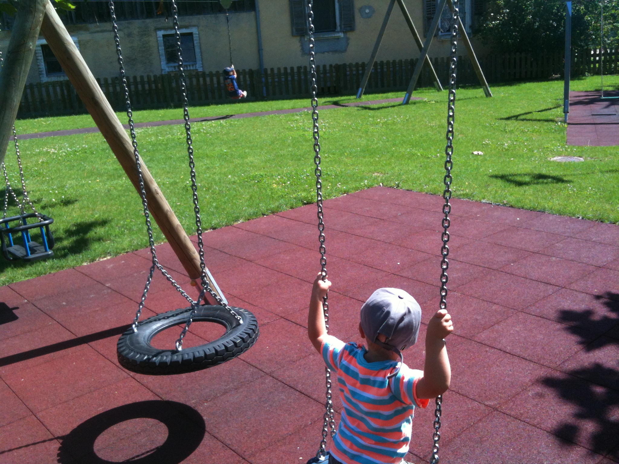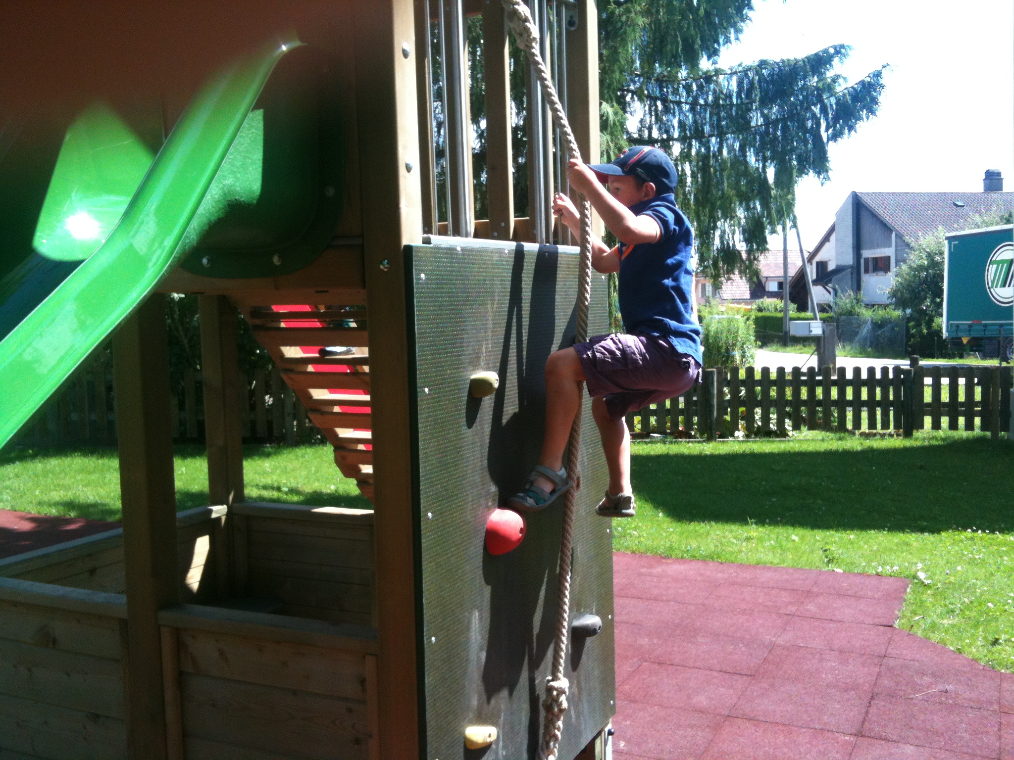D’emblée, après être allés dire bonjour à Grand-maman, Enzo et Robin souhaitent partir en balade pour… aller voir des trains. Mais voilà que le giratoire à l’entrée de Glovelier est fermé à la circulation en raison de la pose d’un nouveau revêtement. Nous devons faire un détour par Bassecourt, ce qui nous retarde et nous fait rater l’heure favorable à la gare. Nous allons donc profiter d’aller repérer la place de jeux dont Laura et Quentin nous ont parlé sur leur blogue.